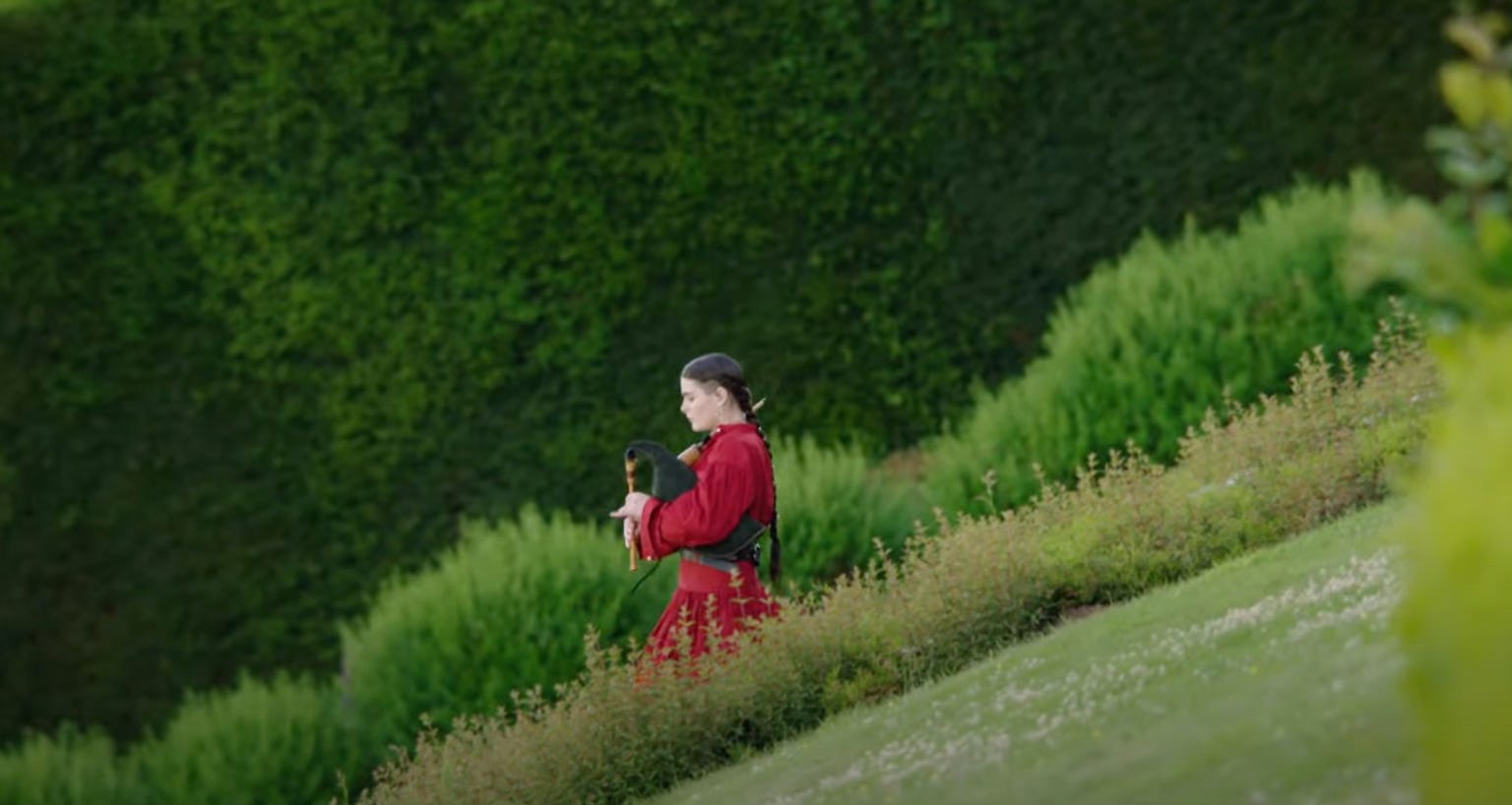 Have you watched the recent Dior Cruise show? Tears started flowing as I listened to the skirl of bagpipes, because I’m actually quite sentimental. Walking ahead of the models, the bagpipe player was clad in a red gown, her hair twisted in a warrior braid. She opened the show walking around, as the pipes echoed through the grounds of Drummond Castle in Perthshire, Scotland,