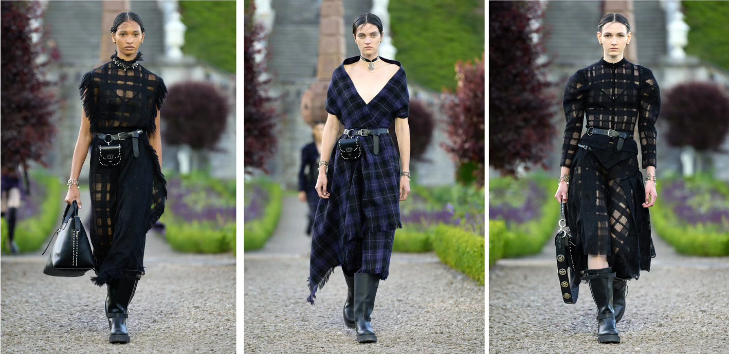 What Chiuri did so well in her recent collection, which was clearly well researched, was incorporate the geopolitics and history of the country without only focusing on the fabrics. There were elements of romanticism but also toughness to the collection. These nods to Scotland's true history, not the romantic version of the country which has been crafted and perpetuated by visitors.